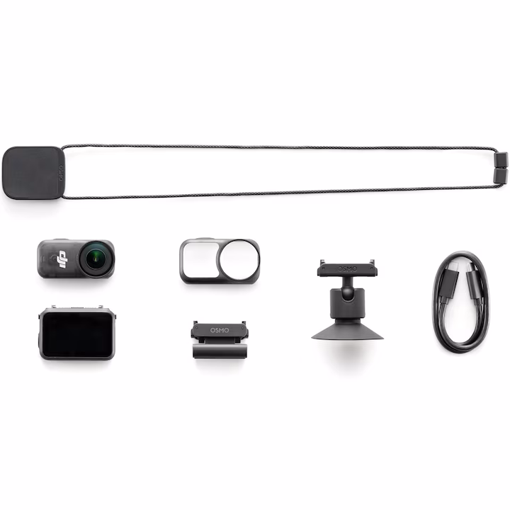| Continut pachet | 1 x Camera video 1 x Dock Vision multifunctional Osmo Nano 1 x Clip magnetic pentru palarie 1 x Snur magnetic Osmo Nano 1 x Carcasa de protectie Osmo Nano 1 x Cablu USB-C la USB-C PD (USB 3.1) 1 x Adaptor cu articulatie magnetica dubla pentru Osmo Nano 1 x Sticker cu logo DJI |