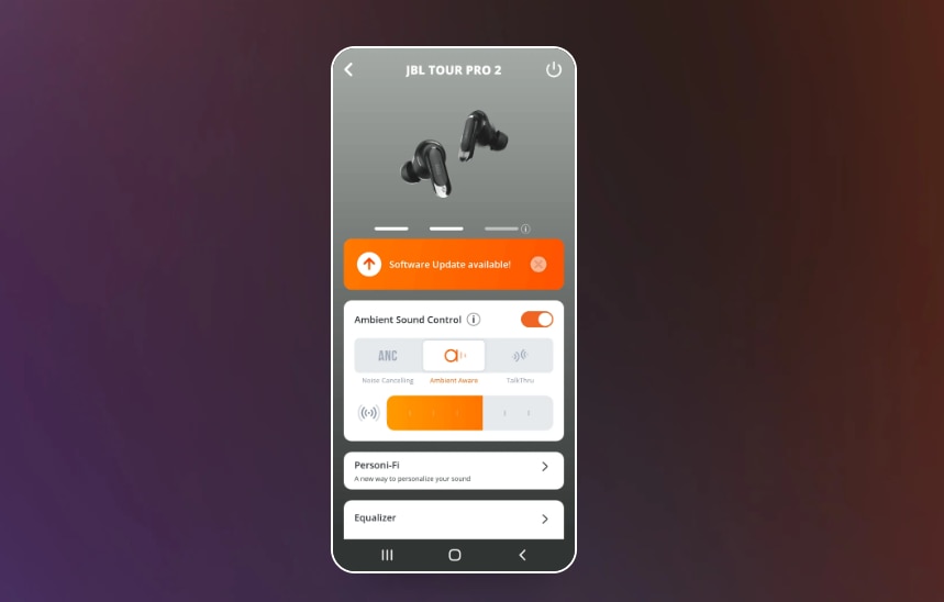 Ramaneti atent la sunetele lumii din jurul dvs. in timp ce va bucurati de muzica cu Smart Ambient, controland nivelurile de sunet ambiental si activand butonul de amplificare personala a sunetului prin intermediul aplicatiei JBL Headphones App pentru a creste volumul conversatiilor cu +15-20dB si pentru a regla echilibrul L/R.